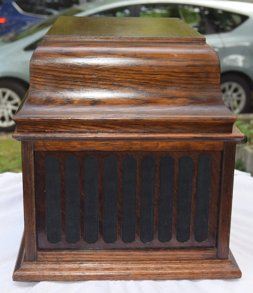 Cosmetically, this Amberola 30 has a very nice, clean original finish. There is no veneer peel, which is probably present in about 95 per cent of these models. Everything is all original, down to the front grill, which is often missing.