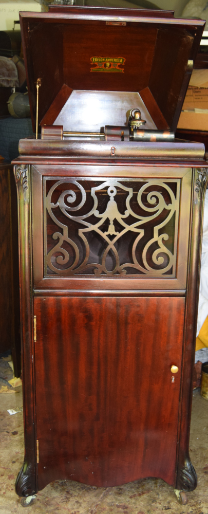 The fancy and well constructed cabinet was a competitor to the best of Victrola craftsmanship, and stands in contrast to the less robust Amberola models following the great factory fire of 1914.