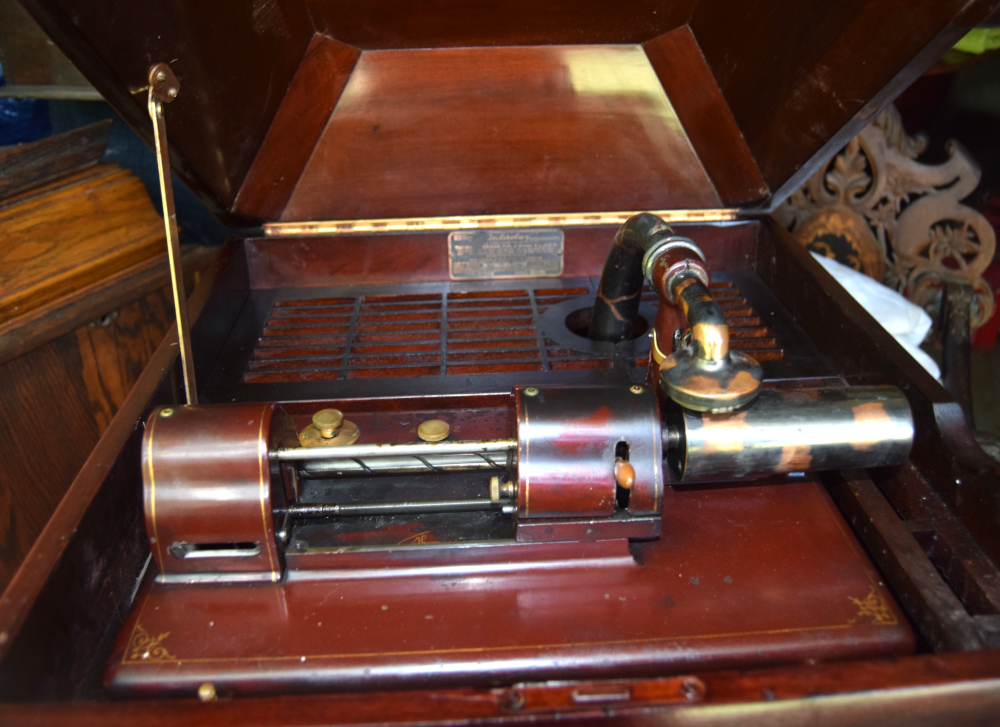 The mechanism is especially intriguing to collectors as it featured a moving mandrel/stationary reproducer in the style of the rare Edison Opera.