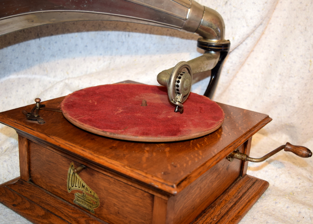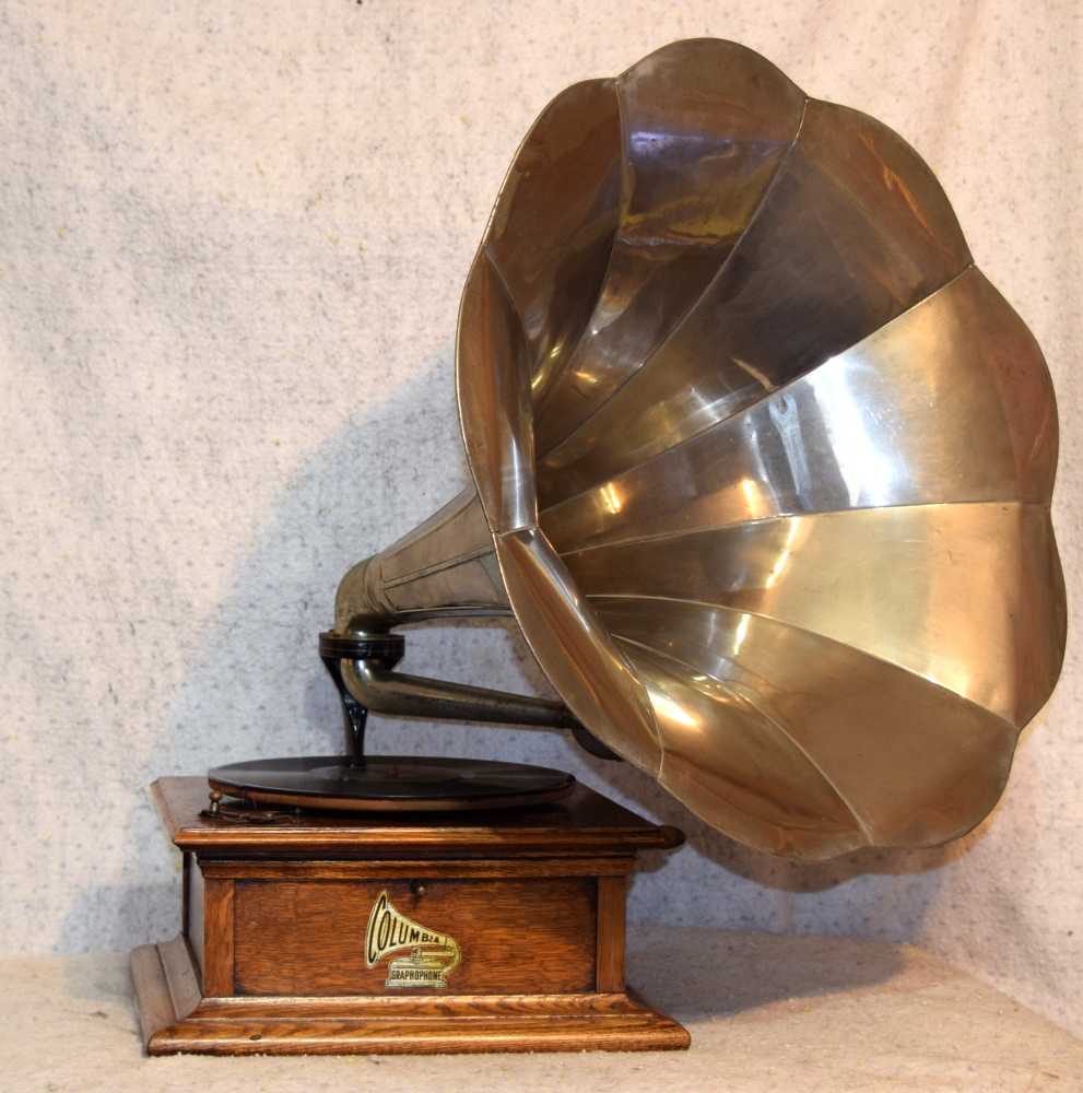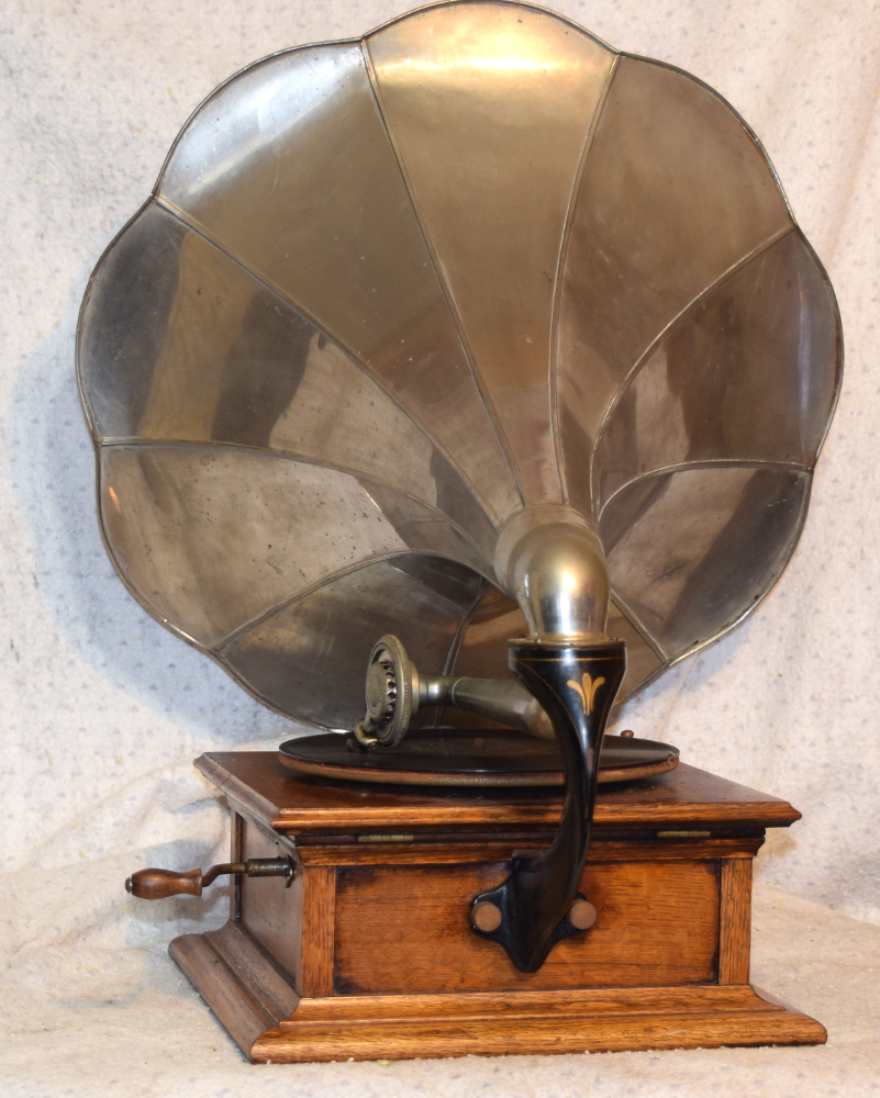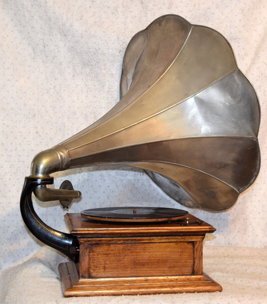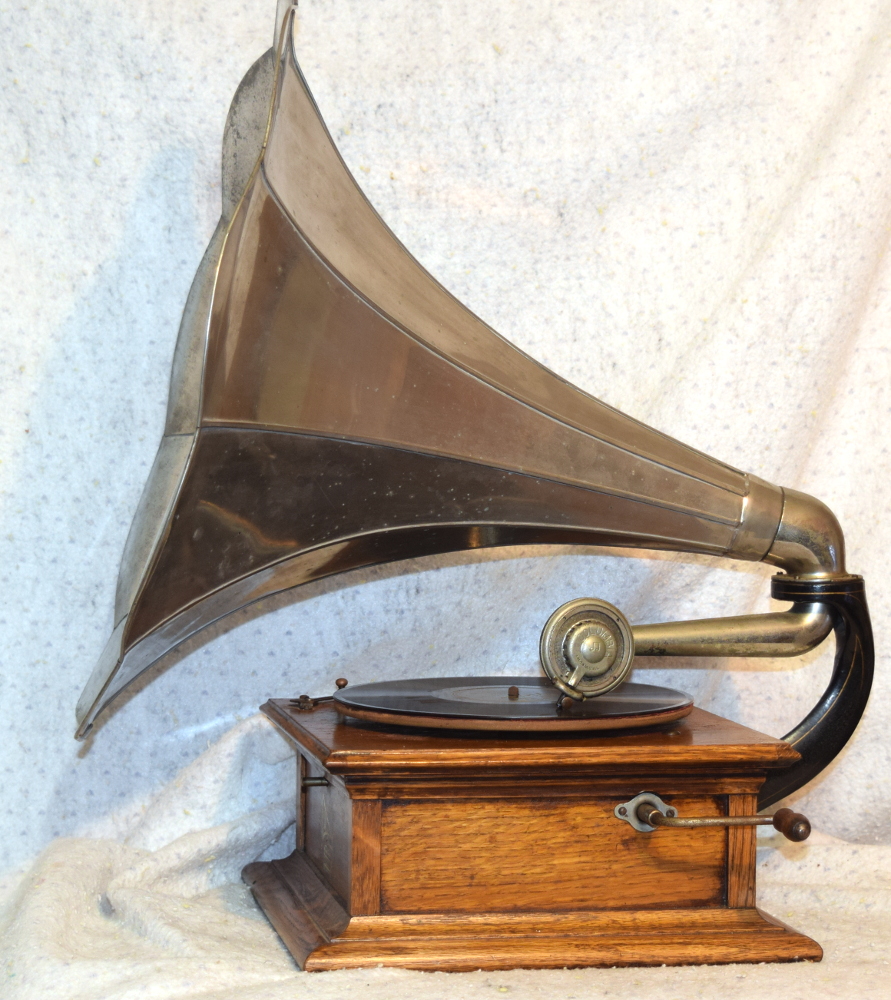 Good, reasonably priced choice if you want an original outside horn phonograph that plays regular 78rpm shellac records, rather than proprietary discs. If you don't have any records we'd be happy to ship you some for just the cost of Media Mail.