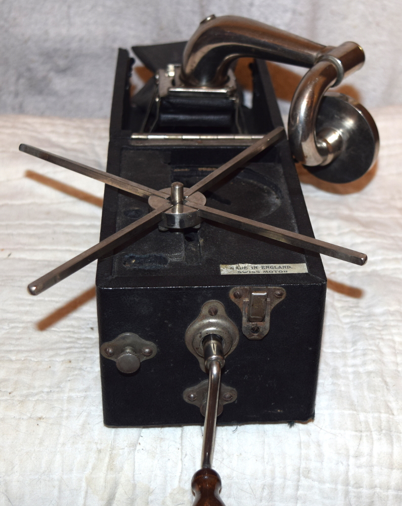 One of a multitude of Cameraphone variety machines of the early 1920s, this Peter Pan Gramophone boasted that it was British made, albeit with a Swiss motor.