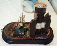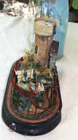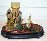 This unrestored example is about 18 inches tall, and features a ship rocking, a castle and a small musical movement.