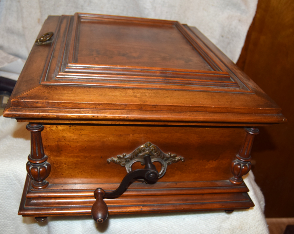This Symphonion music box in a beautiful, original finish walnut case comes with an added bonus: 100 original 13 5/8" discs!